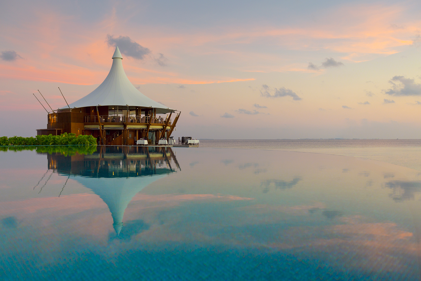 The iconic, pinnacle-roofed restaurant on the shore of the legendary Maldivian luxury island resort of Baros is visible from miles away. Its opening in December 2005 elevated dining in the Maldives to an unrivalled level. Since then the resort’s guests have been able to enjoy the pleasure of epicurean dining in a unique over-water setting.