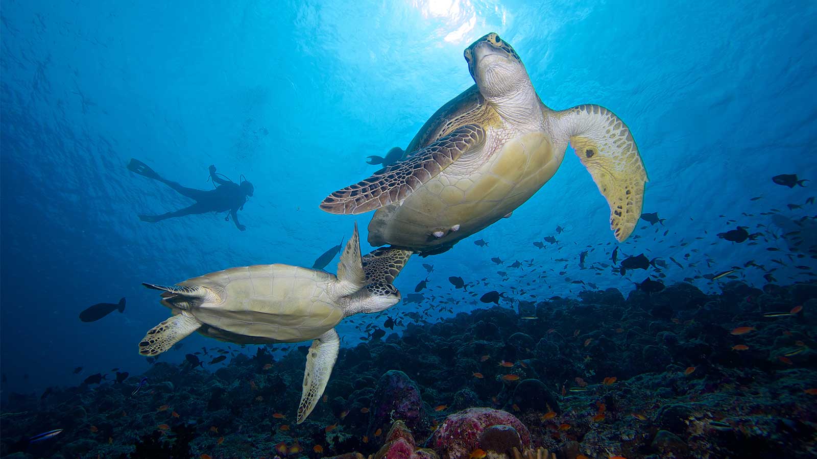 Turtles galore – if seeing sea turtles is on your bucket list, Kuredu is, without a doubt, the best place to get that tick. The Maldives’ largest community of green sea turtles thrive on the reefs around Kuredu and feast on the lush seagrass meadows just off shore and with their Marine Center hosting a Sea Turtle Biologist from the Olive Ridley Project who runs special tours to see them, sightings are commonplace – all you need to do is go snorkelling or diving. Kuredu has also been recognised as one of the top 10 dive resorts in the Maldives and you will be in safe hands with the patient and friendly team at Prodivers who cater for all abilities from absolute beginners to seasoned pros.