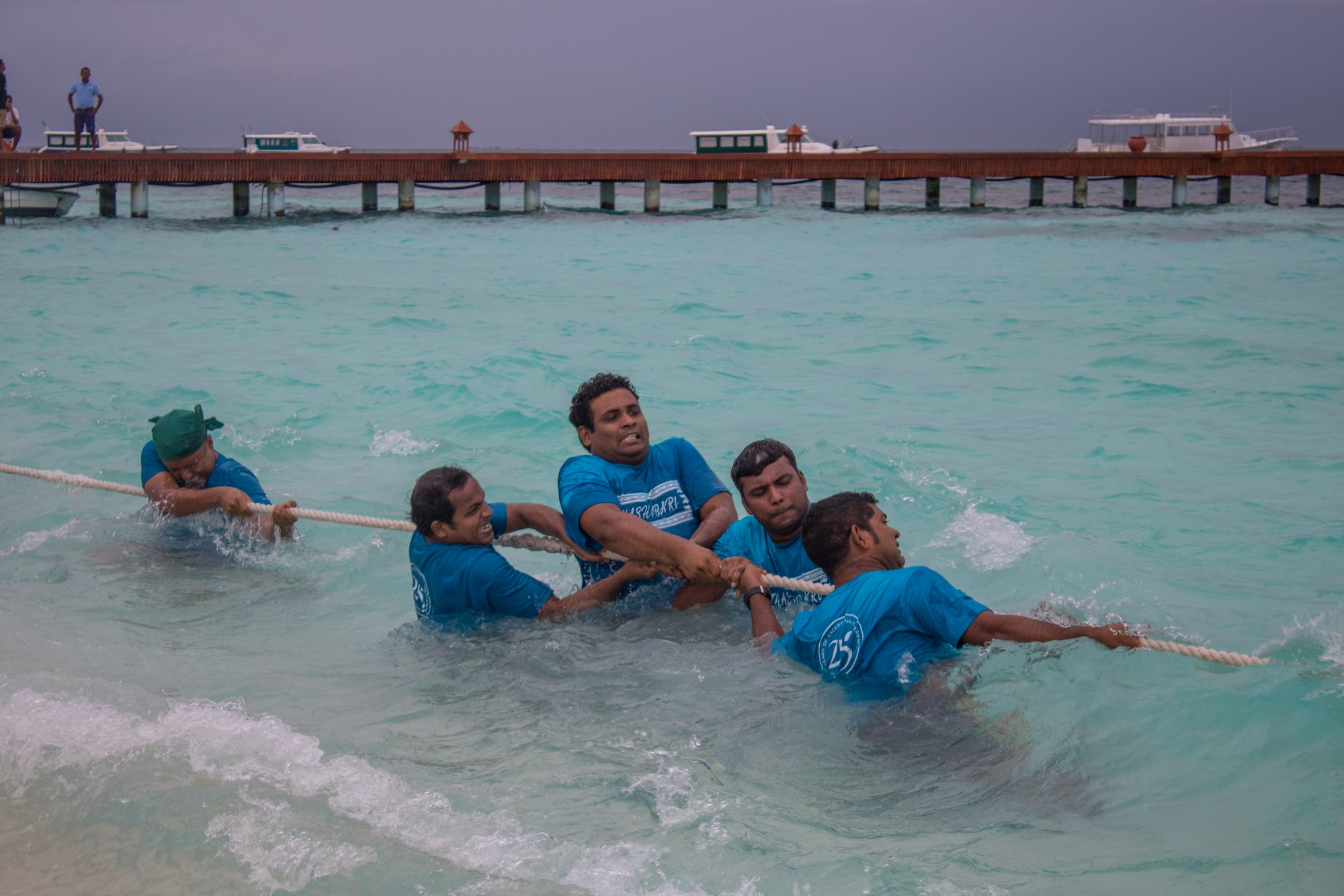A ‘Swim Across the Channel’ kicked off the celebration where 34 guests and associates jumped off from Angsana Ihuru jetty and swam for about 870meters all the way to Banyan Tree Vabbinfaru. This much-anticipated activity was arranged with the guidance of our first aiders. Several boats guided the swimmers to ensure safety for everyone while crossing the channel. This activity was followed by a 3-day ‘sports fest’ held at Banyan Tree Vabbinfaru beach which was attended by associates and several guests with thrilling beach activities including tug of war at the lagoon.