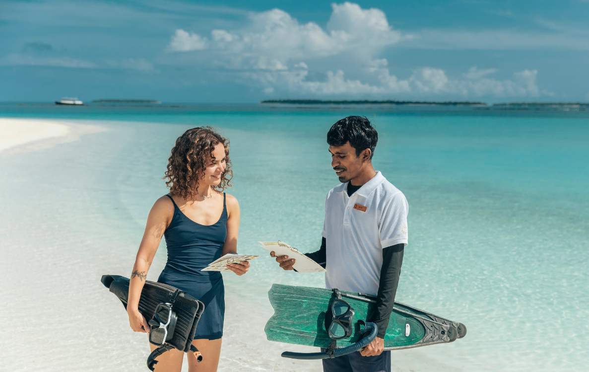 Participants will collect essential data on coral health and fish populations using underwater fish guides, coral health charts, writing slates and will learn to identify fish species. Guests will assess coral reef conditions and contribute to protecting the local marine ecosystem. Findings will be discussed with the marine expert Mohamed Shah, offering deeper insights into marine life at the Iru Fushi lagoon and house reef.