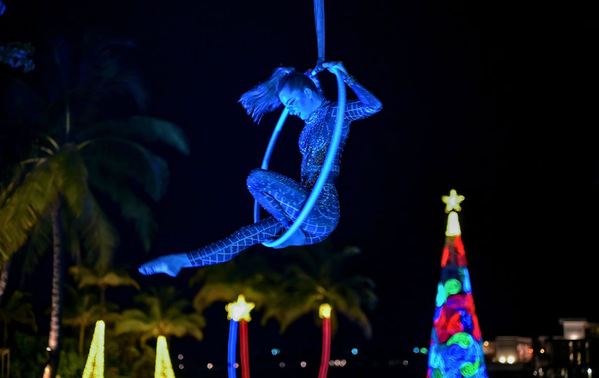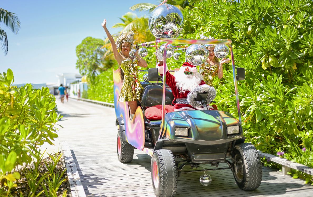December 25th brought the grooviest parade of all with the arrival of Santa Claus. First, life-size gingerbread characters made their entrance, leading the kids on a search for Santa. And just when the excitement couldn’t get any higher, Santa made his entrance from the second floor of the Sunset Bar, giving the kids a chance to catch a glimpse of him from above before he made his way down to greet them. Santa rode off on his disco ball-decked buggy, creating the most fabulous parade. Of course, Santa made sure every child received their very own gift, spreading the holiday cheer.