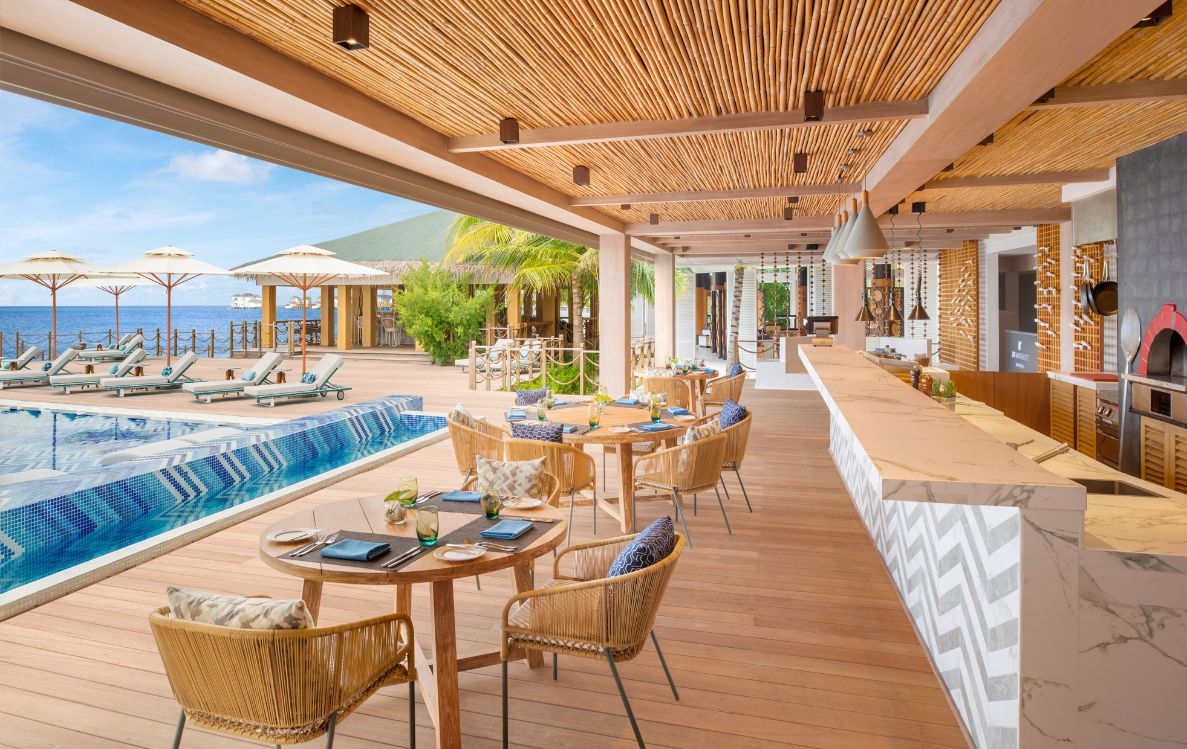 Hashi presents an exquisite Japanese dining experience, with talented teppanyaki chefs performing their craft in an overwater setting. For pre-dinner drinks, guests can visit Wabi Sabi, which serves handcrafted Japanese cocktails and whiskies. The Wine Room offers a refined wine-pairing experience, with over 1,600 bottles from around the world, while Rum Baan serves expertly curated Thai-inspired rum cocktails. Horizon, the beachfront bar, offers refreshing cocktails with a spectacular view of the Maldivian sunset.