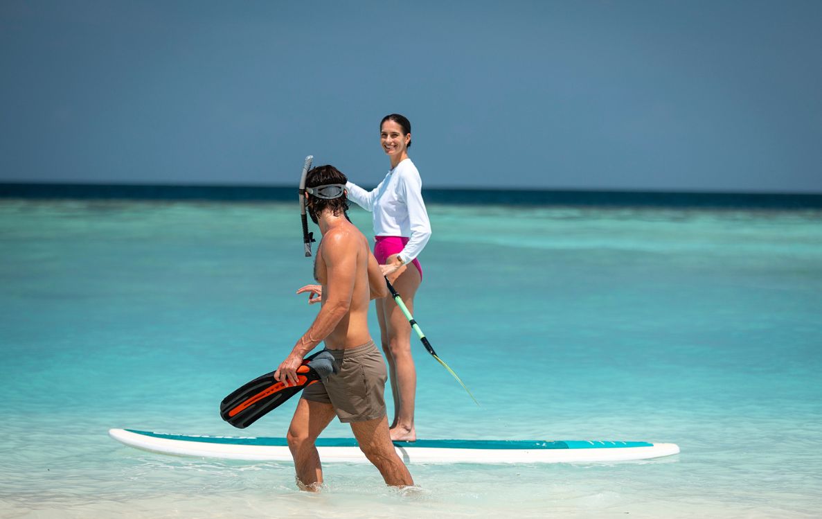 Swim hand-in-hand through the thriving marine world of Milaidhoo’s house reef, where colourful fish and graceful corals create an underwater backdrop for your love story.