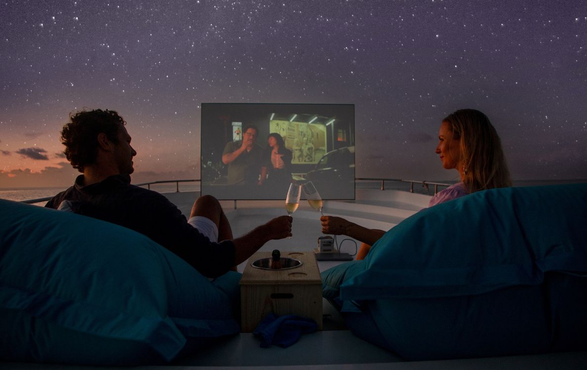 on the shore, perfectly timed with the full moon’s glow. For those seeking a castaway escape, the “Only Us” experience whisks couples away to a private sandbank, where sunset canapés and champagne set the mood. The “Cupid’s Secret Dinner” elevates private beachfront dining with the finest flavours, while the true jewel of the celebration is the “Floating Cinema” — a private movie night aboard a cruise, surrounded by the Maldivian horizon, paired with champagne and gourmet delights. The Ocean Spa has also curated a journey of “Romance & Renewal”, offering an intimate retreat for two where relaxation and reconnection blend together.