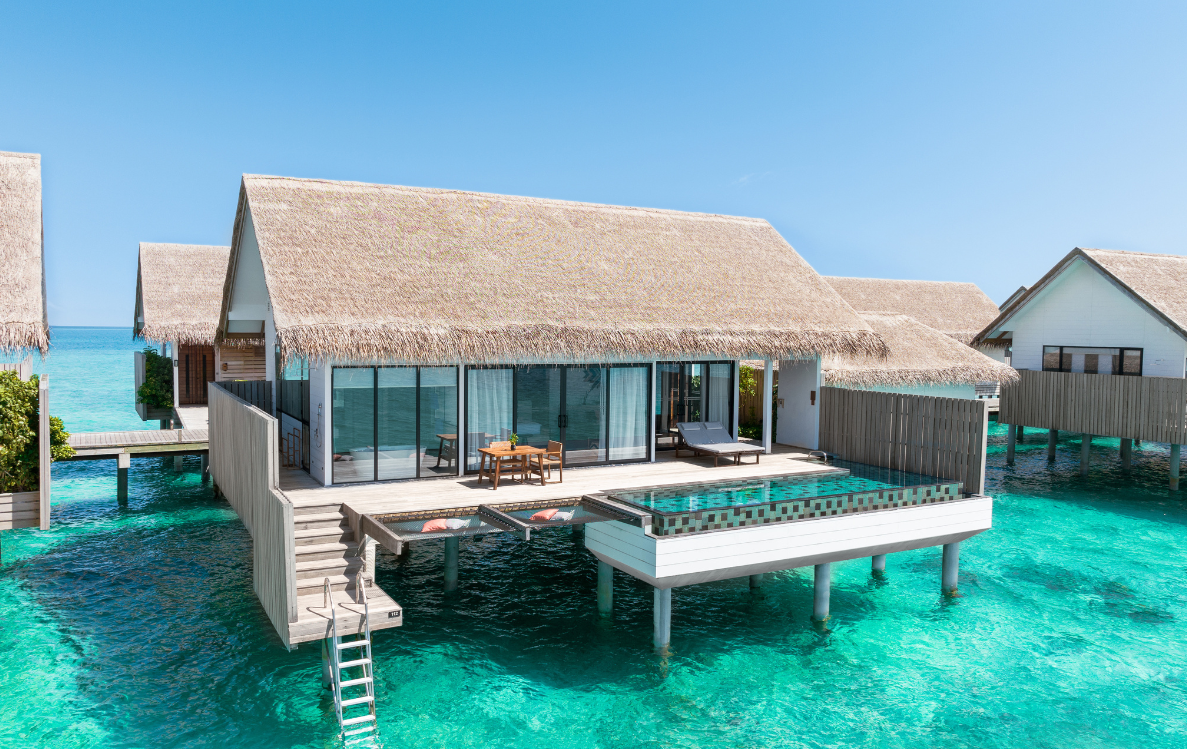 Surrounded by lush foliage, the resort’s One-bedroom Beach Pool Villas offer enticing views of the turquoise lagoon and pristine shore from its private pool and cozy swing. The additional gazebo with sun loungers ensures a tranquil retreat. Those seeking enhanced privacy can choose to stay in the expansive Overwater Suites, which feature private hammocks by the pool and direct access to the Indian Ocean via the sea stairs – offering the quintessential Maldivian romantic experience.