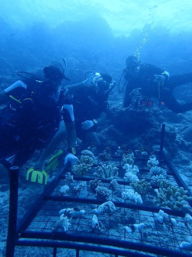 “Corals are very sensitive and beautiful creature that can be found under water and each coral behaves in their own unique way, in tandem with the ever-changing environment,” he said. “We help them to grow and multiply while using different ways to fix corals. The selection process of these corals took quite a while and this included aspect of research on the house reef and lagoon. Soft and leather corals we give dead corals and reef stone as a solid substract and metal cages for the hard corals. We believe that continuous monitoring is the key to the success in their growth.”