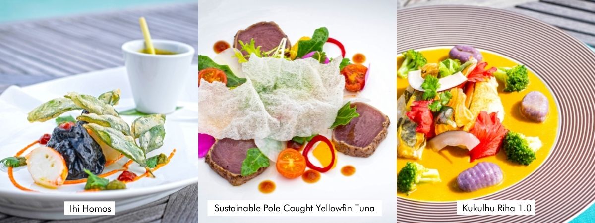 Kicking off the menu are dishes like ‘ihi homos’, which comes with curry leaf tempura lemongrass and scented seafood broth; ‘sustainable pole caught yellowfin tuna’ with beach herbs and pickled white radish; ‘Hinnavaru fisherman’s catch of the day’, served with Thai salad and steamed jasmine rice, and ‘kukulhu riha 1.0′, sous vide corn-fed chicken breast, enriched with Maldivian coconut curry sauce and served with steamed broccoli.