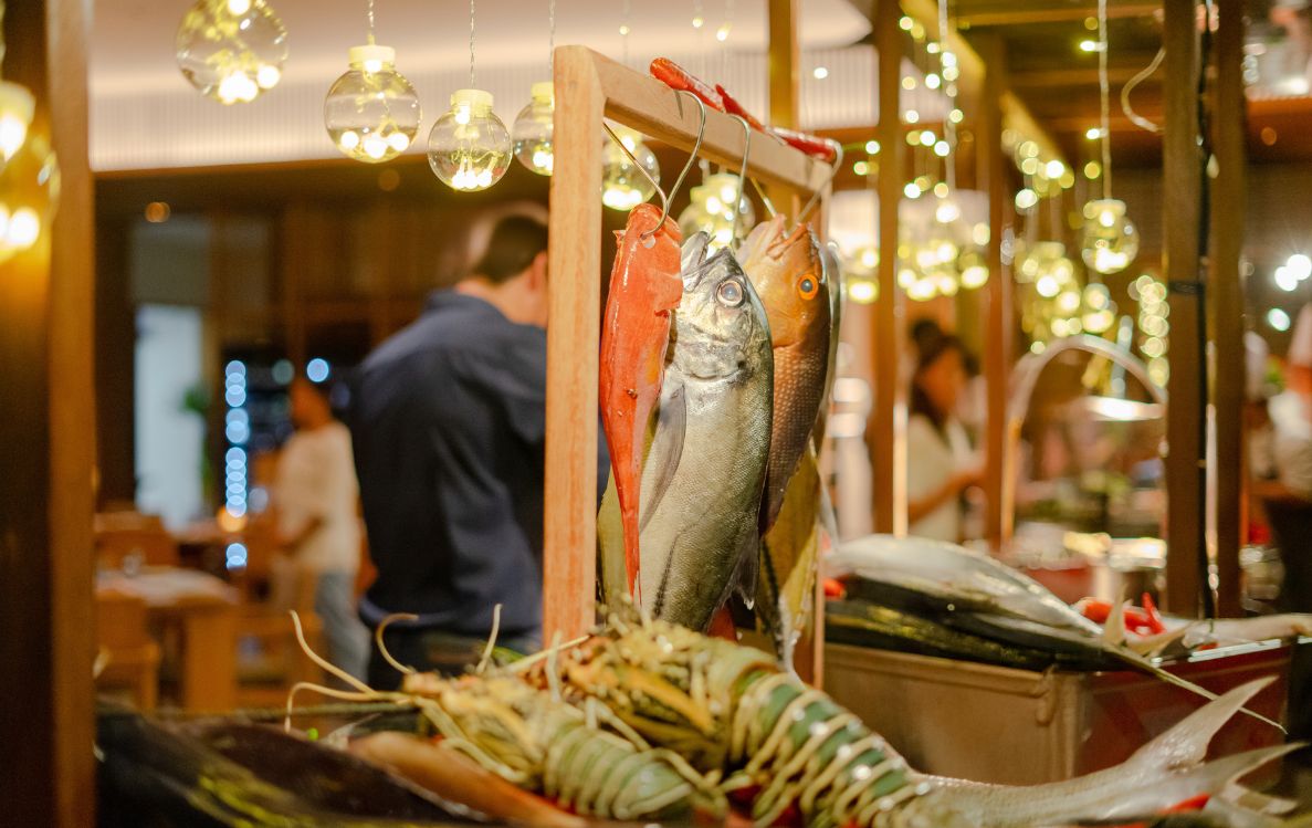 Set along the beachfront, Seasalt restaurant offers the perfect setting to savor the essence of Maldivian cuisine and the fresh flavors of the Indian Ocean. Indulge in a sumptuous buffet of seafood delights like Giant Tuna sashimi, ceviche, and grilled fish, featuring the day’s fresh catch delivered by local fishermen straight from the ocean. This culinary highlight celebrates the abundance of locally sourced produce and reflects the resort’s commitment to sustainability, supporting both the environment and the local Raa Atoll community.