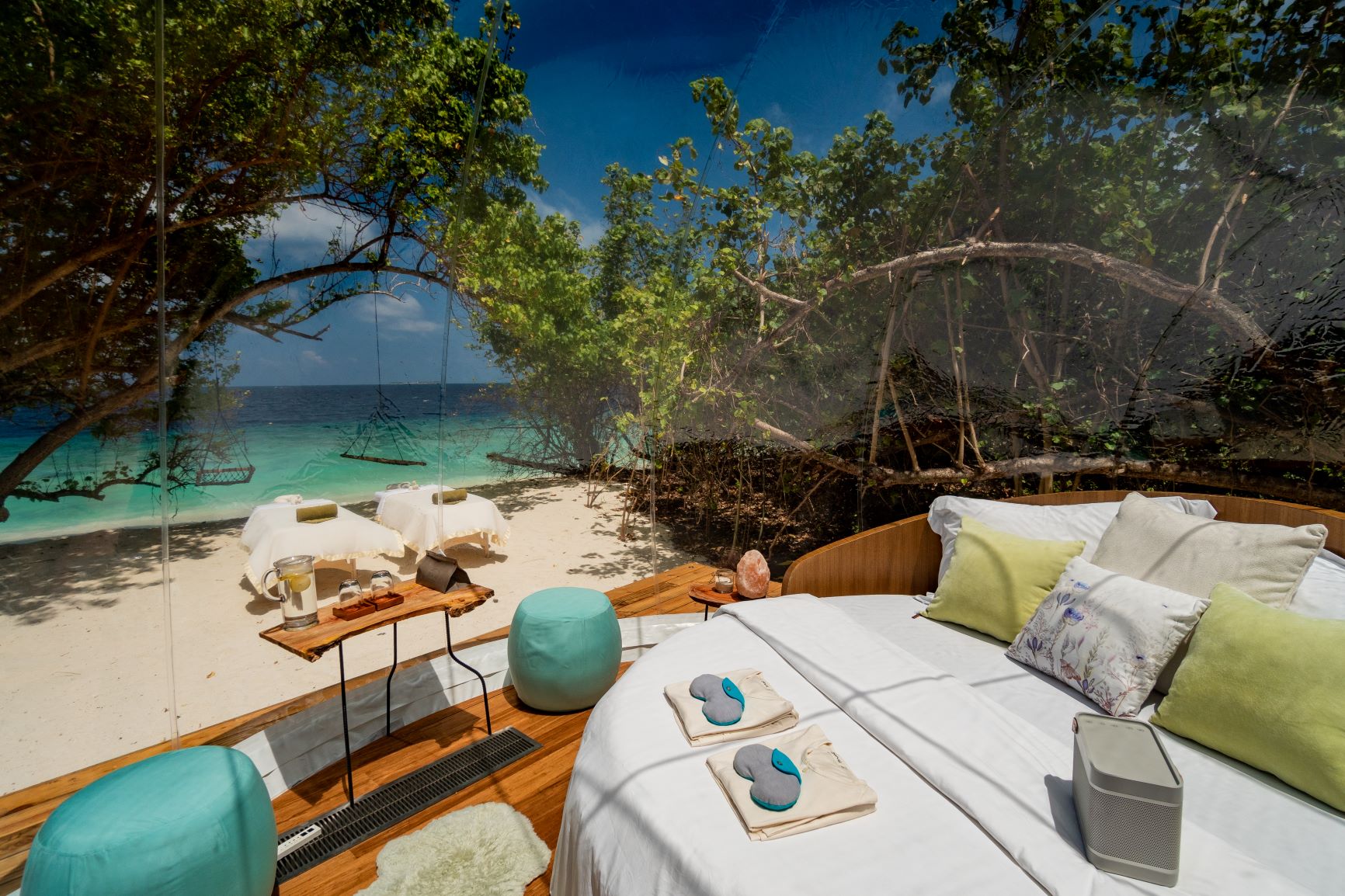 Amilla Maldives Resort and Residences creates three luxury bubble tent experiences featuring champagne, private chef, sauna and plunge pool.