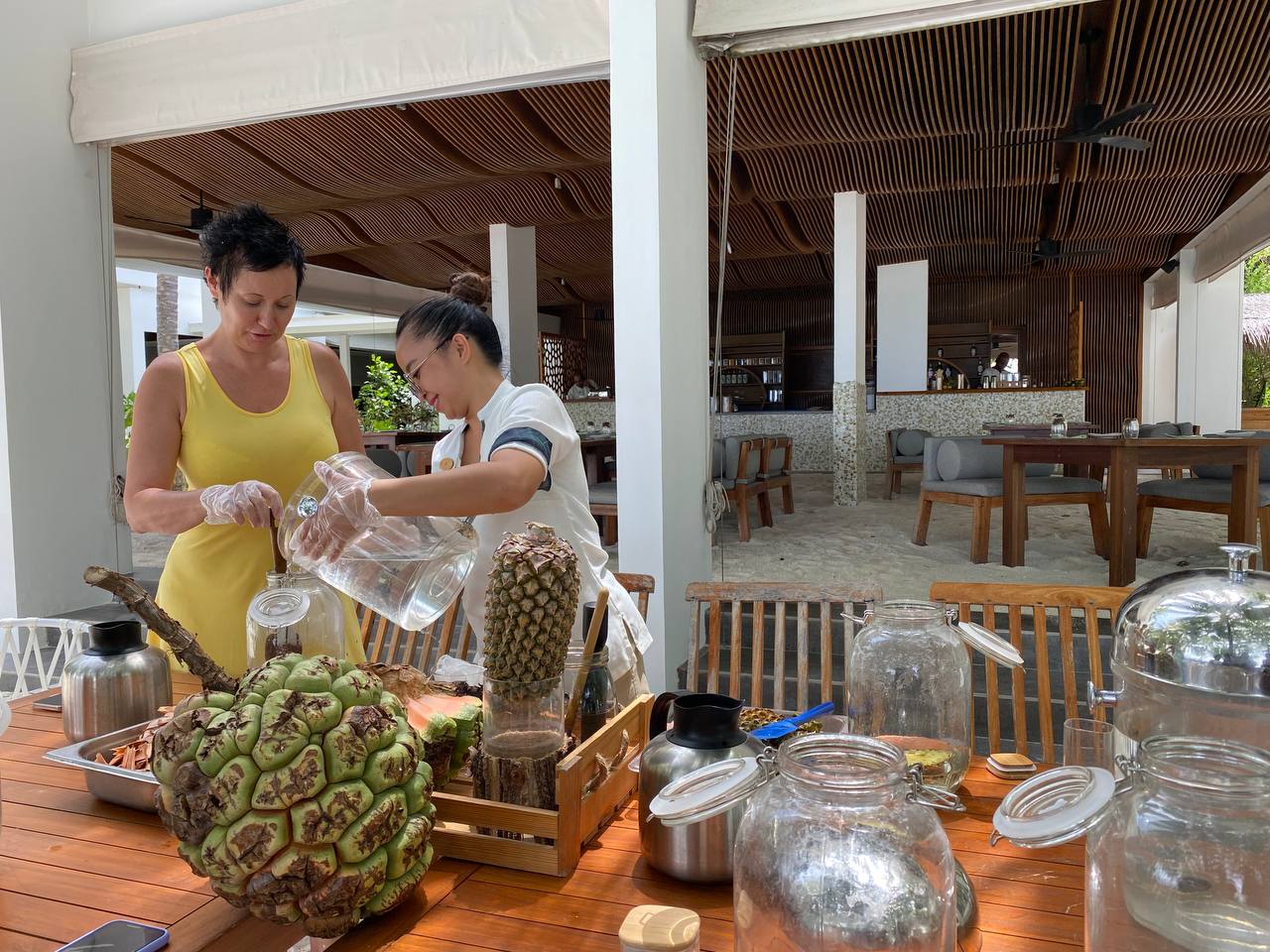 Amilla also emphasizes the importance of probiotics by hosting classes where guests can ferment and bottle screwpine soda and tepache among others. Screwpine or ‘Kashikeyo’ grows abundant in the Maldives, and is featured in countless traditional dishes.