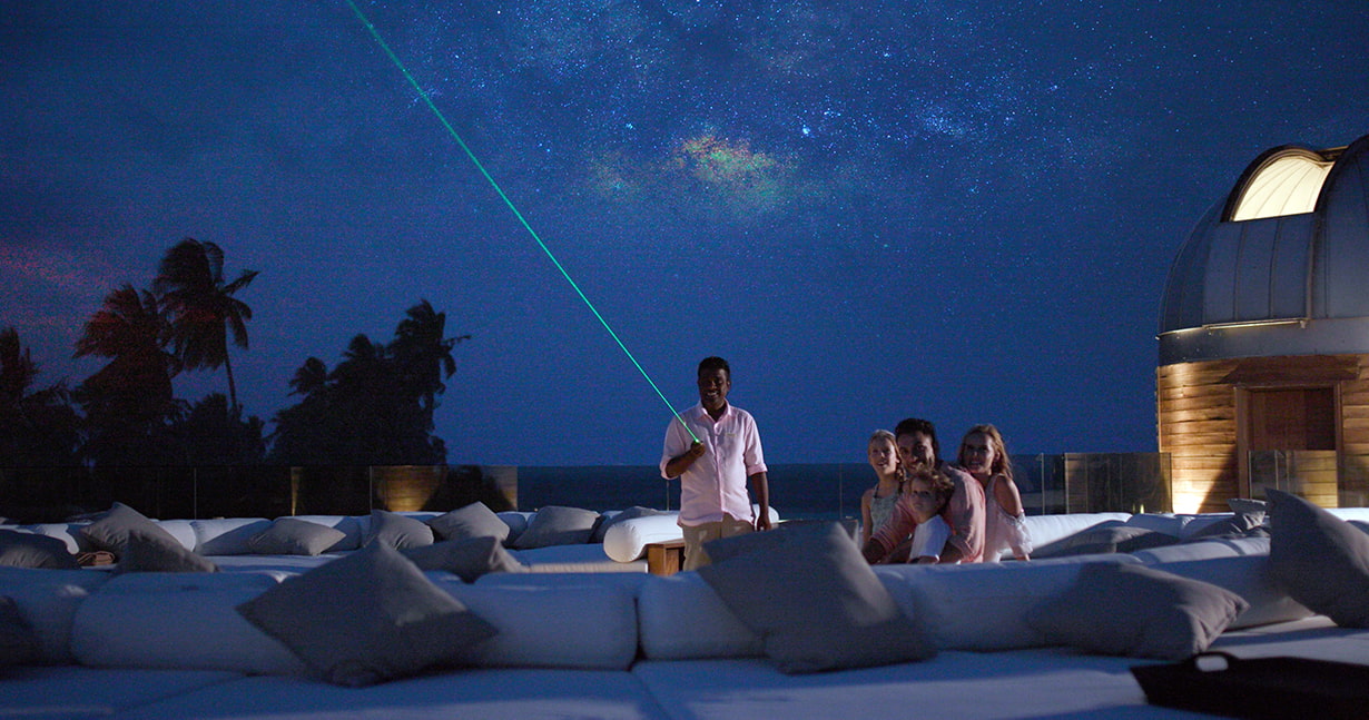 From the ocean to the sky, the grand finale in the package revolves around the universe. With its proximity to the equator, the Maldives is truly an astronomer’s paradise and Anantara Kihavah is the perfect place for spectacular views of both the southern and northern sky. Custom-built for such stargazing encounters, SKY is a unique cocktail bar and home to the most powerful telescope in the region, in the only overwater observatory in the Maldives. Perched over the aquamarine lagoon, the bar proffers front-row seats to ocean views from every vantage point during the day, and as night falls, the open roof deck comes alive. Sip champagne and nibble on Asian inspired tapas, whilst absorbing knowledge imparted by the Sky Guru as he leads with his laser pointer on this cosmic journey as you gaze upon the stars.