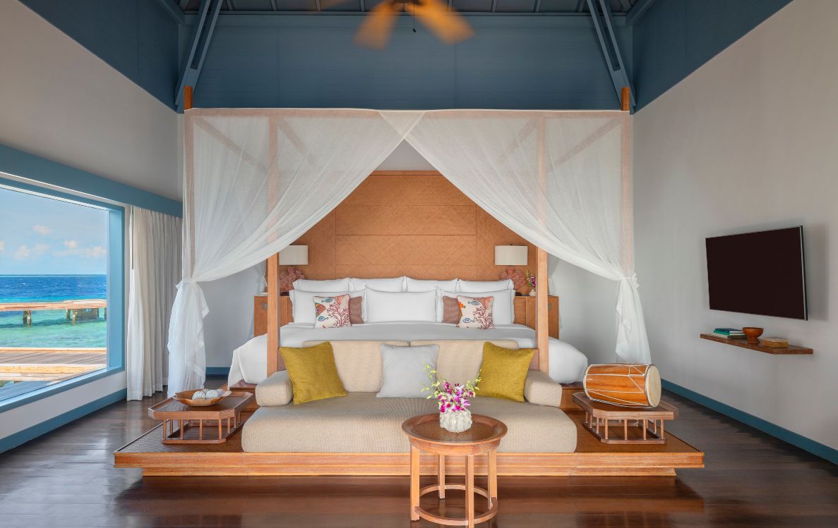 Intentionally crafted as a modern homage to the Maldivian seascape, the resort’s architecture flows with the rhythm of the ocean. A tranquil palette of grey-blues, natural timbers, and organic textures blends seamlessly with the surrounding environment. Open-plan spaces, floor-to-ceiling windows, and generous outdoor decks ensure uninterrupted ocean views with a connection between indoor and outdoor living. Handcrafted elements, inspired by island traditions and maritime heritage, evoke a sense of calm discovery throughout.