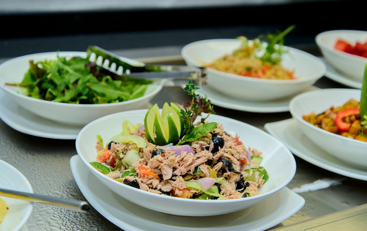 Begin the evening with a refreshing Watermelon Cooler and a rich Seafood Soup, followed by a variety of appetizers like Smoked Chicken Ceasar Salad and Caprese Salad. For mains, savour highlights such as Chicken Roulade and Seafood Skewers, alongside live-action stations featuring Batter Fried Prawns and Thai Black Pepper Beef and Seafood. End the night on a sweet note with Festive favourites like Lemon Meringue Pie and Chocolate Yule Log.