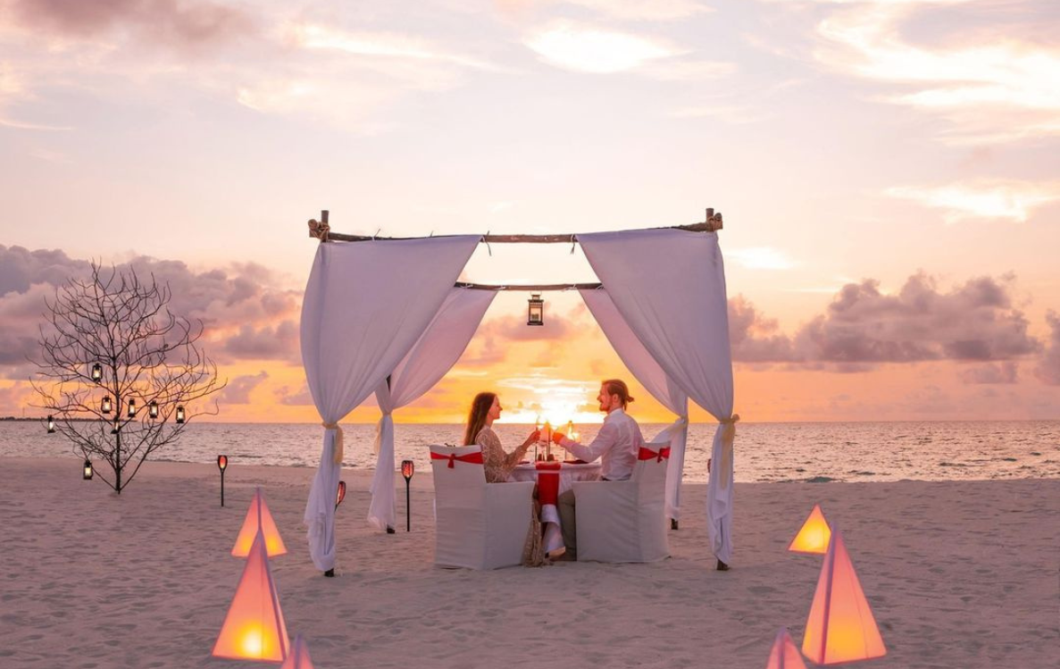 For the ultimate romantic experience, the resort offers a private pergola set up on the beach for an intimate five-course dinner. As the sun sets, couples can savour a delightful meal with refreshing drinks while enjoying the soothing sounds of lapping waves in a magical setting.