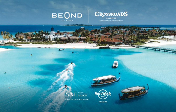 CROSSROADS Maldives unveils the much anticipated promotional campaign with beOnd Airline – World’s first premium leisure airline. This limited-time collaboration promises beOnd passengers an exquisite travel experience, offering complimentary nights and substantial discounts at two of the Maldives’ most esteemed resorts: SAii Lagoon Maldives, Curio Collection by Hilton, and Hard Rock Hotel Maldives