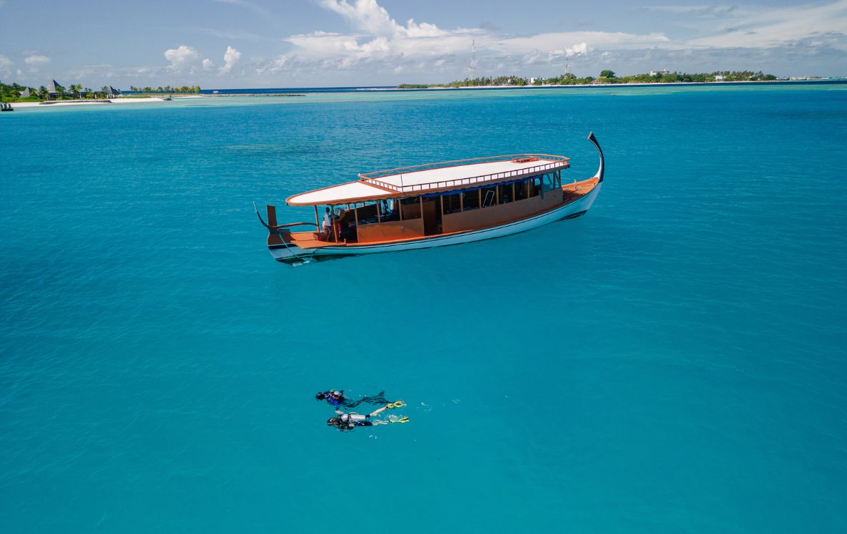 Slip below the surface and find yourself in another world. The Maldives is renowned for its rich marine life, and Kuda Villingili offers unrivalled access to snorkelling and diving adventures that unveil the vibrant coral reefs and schools of tropical fish that call this region home. It’s the perfect opportunity to float alongside manta rays or explore untouched underwater gardens.