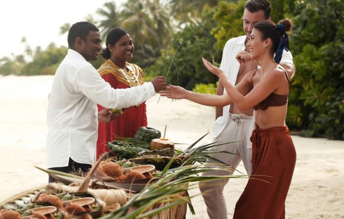 But a lively retreat isn’t defined solely by spectacle. Cultural expression also plays a central role. Resorts are increasingly weaving in Maldivian traditions, from drumming performances to local art workshops, offering guests a deeper, more interactive experience of the islands.   Evenings at these Maldivian retreats unfold like immersive cultural showcases. At Alila Kothaifaru, guests embark on The Art of the Coconut, a four-hour journey weaving Maldivian stories, art, cuisine, and wellness, watching traditional coconut climbers in action, crafting creations from coconut palms, learning to mix cocktails in Mirus Bar, and ending the experience with a flowerstrewn coconut bath and soothing massage.