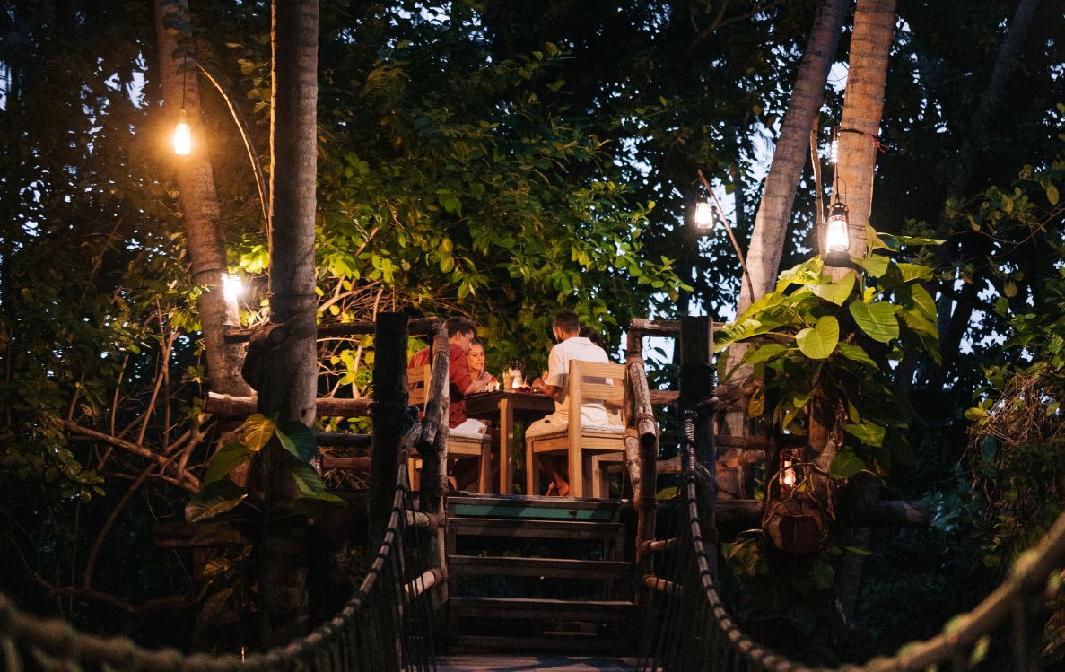 Hidden within the dense jungle of Villa Park, ZERO offers a treetop dining experience defined by simplicity and sustainability. Set above the garden canopy, the split-level restaurant focuses on a zero-food-miles philosophy, sourcing ingredients entirely from land and sea. Fresh vegetables, herbs, and tropical fruits are harvested directly from the resort’s organic gardens, while seafood is caught locally. Dishes are prepared on-site, from garden-grilled seafood to vibrant salads built around seasonal produce. The menu emphasises nourishment without excess, allowing natural flavours to lead. Dining at ZERO feels grounded and intentional, offering a rare sense of connection between plate, place, and environment high above the forest floor.