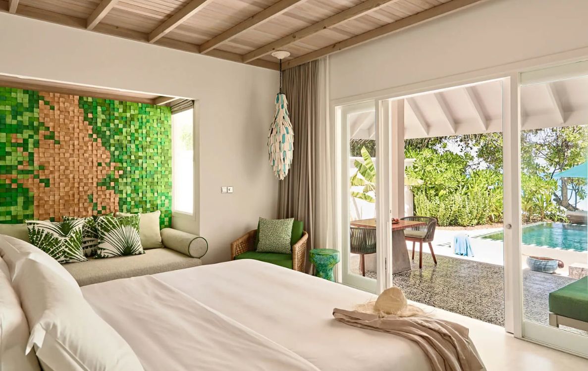 The stylish connecting villas at Seaside Finolhu Baa Atoll is designed to cater to families and groups travelling together. This expansive space features two beach villas connected by a pathway, offering privacy and convenience. Accommodating six adults and four children, it boasts three stylish bedrooms, ocean views, a private garden, and a sparkling pool. Guests can enjoy ocean views, a private garden, and a pool, creating the perfect setting for an unforgettable escape. The villas feature direct beach access and outdoor rain showers, blending luxury with the natural beauty of the Maldives.