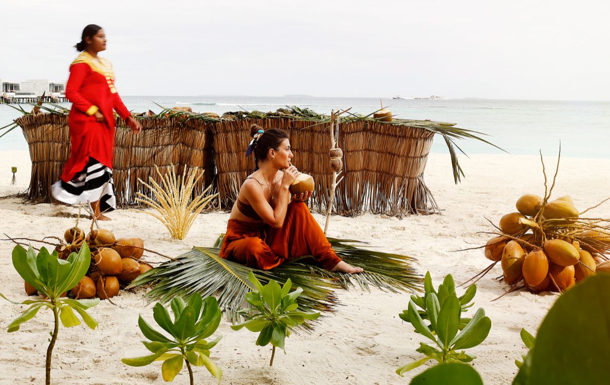 Mornings often begin on the beach, where the coconut tree, the Maldives’ Miracle Tree,  takes centre stage. You watch a skilled local climb high into its fronds, returning with coconuts brimming with fresh water. Later, you weave palm leaves into keepsakes, cook mashuni seasoned with lime and chili, and shake coconut-based cocktails as the sun sinks low over the lagoon. Every gesture, tactile, edible, sensory  connects you to centuries of tradition.