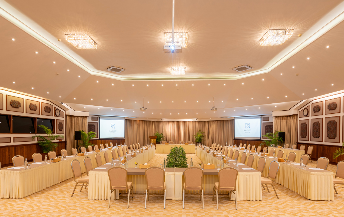 Bandos Maldives presents the Bandos Convention Centre, offering sophisticated conference facilities to a global audience. Conveniently situated near the airport and the capital city of Malé, the centre features versatile spaces accommodating up to 350 guests for large conferences, as well as intimate meeting rooms for groups of up to 20. Each meeting room is fully equipped with comprehensive technical support to meet all your requirements. From transportation and catering to providing authentic Maldivian cultural entertainment, every detail is meticulously managed to ensure your event is both productive and memorable.