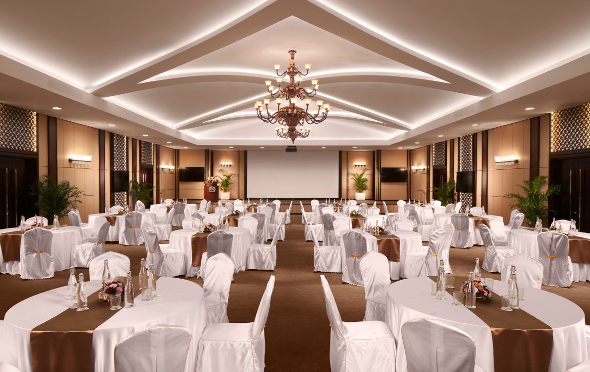 Champa Maa Conference Hall at Meeru Maldives Resort Island redefines event spaces, accommodating meetings, incentives, conferences, and exhibitions with a modern touch. This 132 sqm hall features a 17 sqm stage, stylish lectern, and state-of-the-art technology, including an LCD projector, surround sound, free Wi-Fi, and essential accessories. The fully air-conditioned space offers excellent ventilation and views of the island’s lush vegetation. Flexible furniture arrangements and movable partitions adapt to any event’s needs. Packages include refreshments like tea, coffee, water, juice, pastries, and an international buffet lunch, with options for stay-in guests that cover meals, accommodation, and transfers.