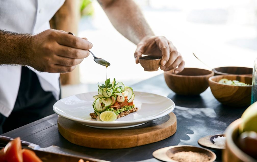 At COMO Cocoa Island, dining mirrors the character of the island itself. Seafood arrives fresh from Maldivian waters, produce leans local wherever possible, and much of what appears on the table is made in-house. The menus are broad enough to carry guests through longer stays without feeling repetitive, yet focused enough to retain a clear identity. Wellness does not sit apart from the experience. It underpins how ingredients are sourced, prepared and presented.