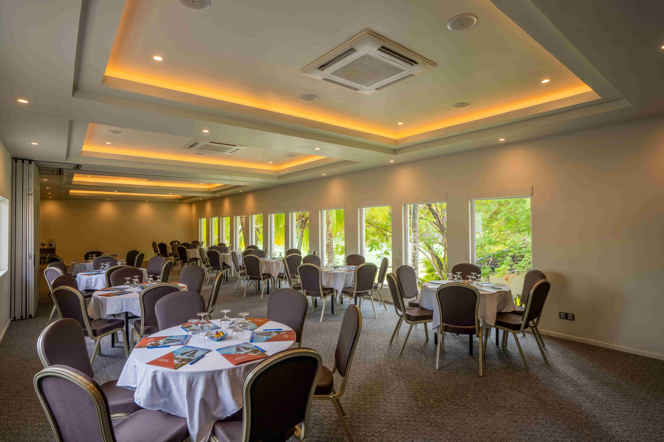 This modern space located in Meeru Maldives Resort Island is not just another rectangular table with a formal seating arrangement. In fact, this 132sqm Conference Hall, boasts a 17sqm stage and a stylish lectern giving a professional touch to the entire spacious structure. To collaborate more, the hall is also equipped with a state-of-the-art technological upgrades and electronic gadgets including LCD Projector & Screen, surround sound and audio equipment’s, flipcharts, Free WIFI & Internet access along with other accessories like notepads and pens.