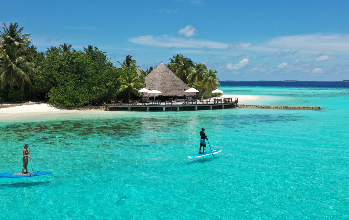 With Riyaa Watersports you can keep things light—windsurfing lessons, a turn on the catamaran, stand-up paddleboarding, or an easy kayak over the shallows. When you’re ready to roam, join a guided snorkel out to Manta Point to spot rays in season, or lean into tradition with handline fishing and a short primer on handling the sails of the resort’s antique Maldivian riyaa. It’s active without feeling scheduled, and perfectly sized for two.
