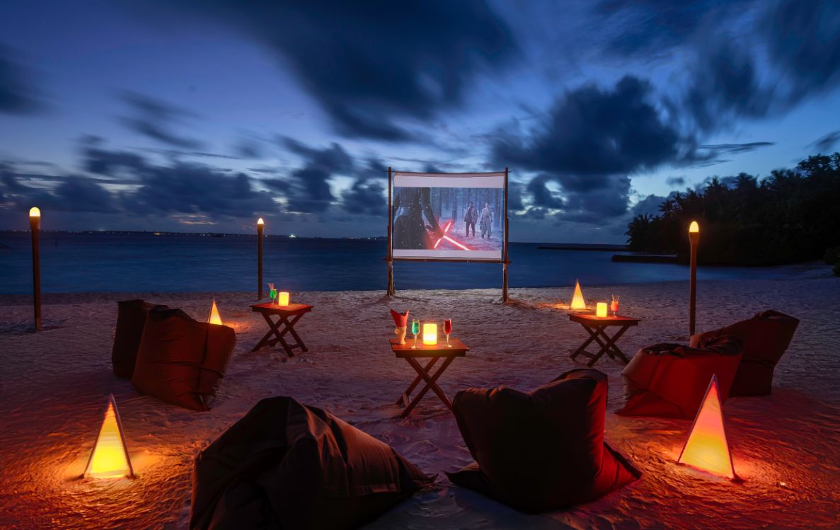 Some nights, the beach becomes a cinema: Movie Under the Stars comes with popcorn and drinks, and you can request a private screening if you want the shoreline to yourselves. On Fridays, a beach bonfire gathers a few easy conversations and a live musician into a warm circle of light—social, never crowded—before you wander back along the sand.
