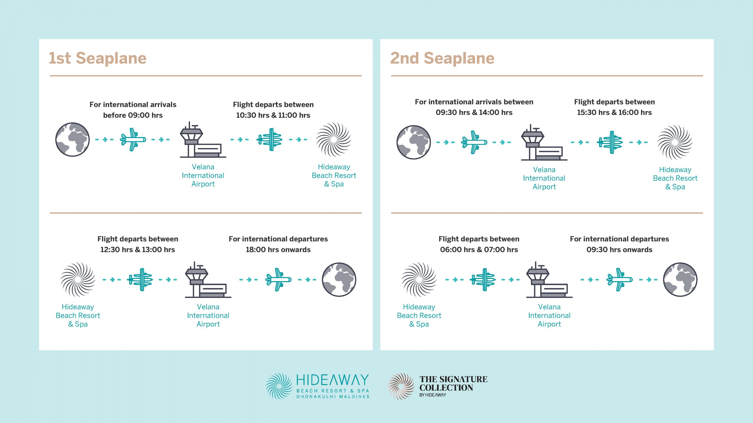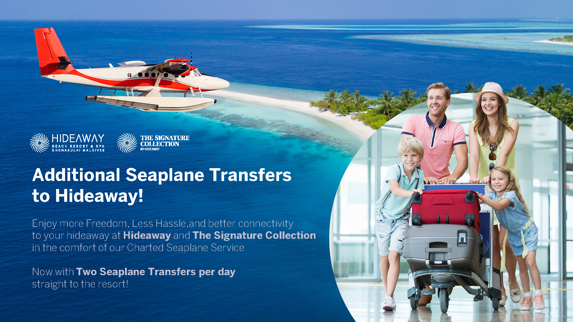 “The newly launched additional two seaplane transfers per day will help guest arrivals and departures with the added comfort of enjoying more freedom, fewer hassles, and better connectivity to and from their respective hideaways at Hideaway and The Signature Collection”, mentions Desislav Gospodinov – Group Director of Sales & Marketing. “It is our goal and vision to make connectivity to our beautiful slice of paradise as seamless as possible so that guests can enjoy the great experiences that we have like no other in the Maldives without worrying too much about getting to the property. With our transfer partners we will continue working tirelessly to improve the transfer experience to our large island resort as much as possible”.