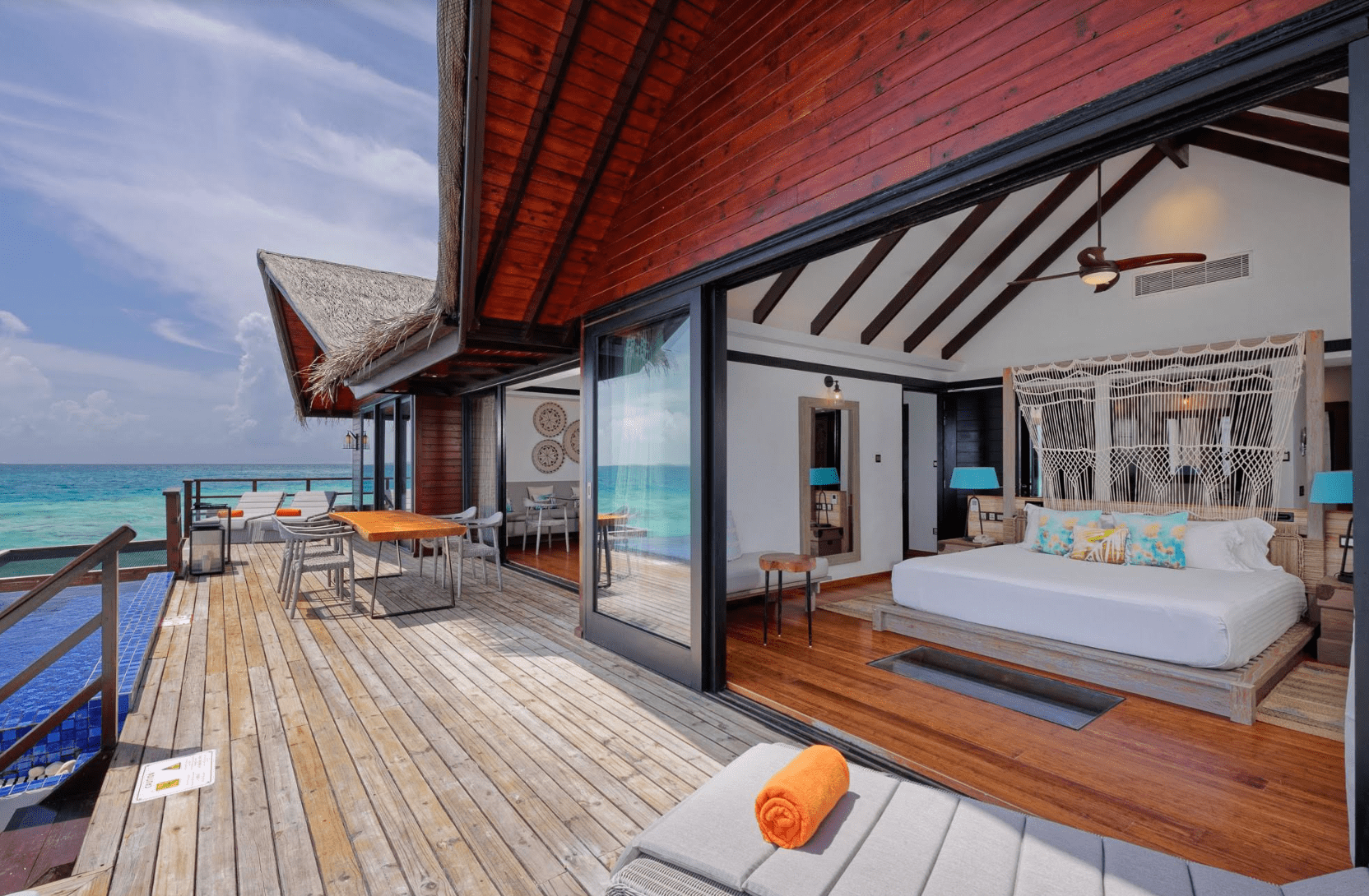 But what really sets the Grand Park Kodhipparu Maldives apart is it is made for all stunning villas.  Whether you choose an overwater villa or a beachfront pool villa, each villa is designed with families in mind and features a thoughtful and premium range of in-villa, minibar, bath, bed and pool amenities that truly makes travellers not want to leave the villas.