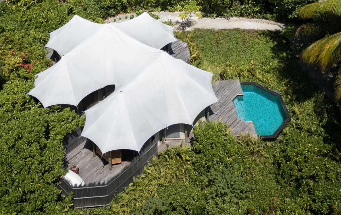 Sirru Fen Fushi’s Safari Tented Villas are thoughtfully designed for larger groups and families looking for something offbeat yet refined. Shaded by banyan trees and lush foliage, these villas feature natural textures, freestanding outdoor bathtubs, and translucent walls that invite the jungle in. Inside, guests will find underfloor air conditioning, Each villa has its own sun deck and plunge pool for total privacy under the canopy.
