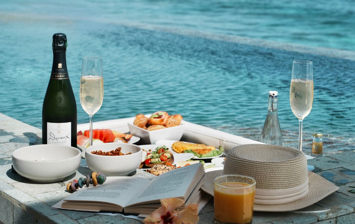 Culinary moments continue across the resort’s five dining venues, three full-service bars, and an intimate Wine Room housing more than 1,200 labels, complemented by bespoke destination dining experiences. Romance comes to life at Hashi Pier, where a candlelit setting overlooking the ocean frames an exclusive surf-and-turf menu, indulgent caviar, and perfectly paired Champagne. For a more intimate celebration, couples may retreat to the privacy of their villa for an elegant four-course dinner, crafted to celebrate romance through flavors and an intimate setting.