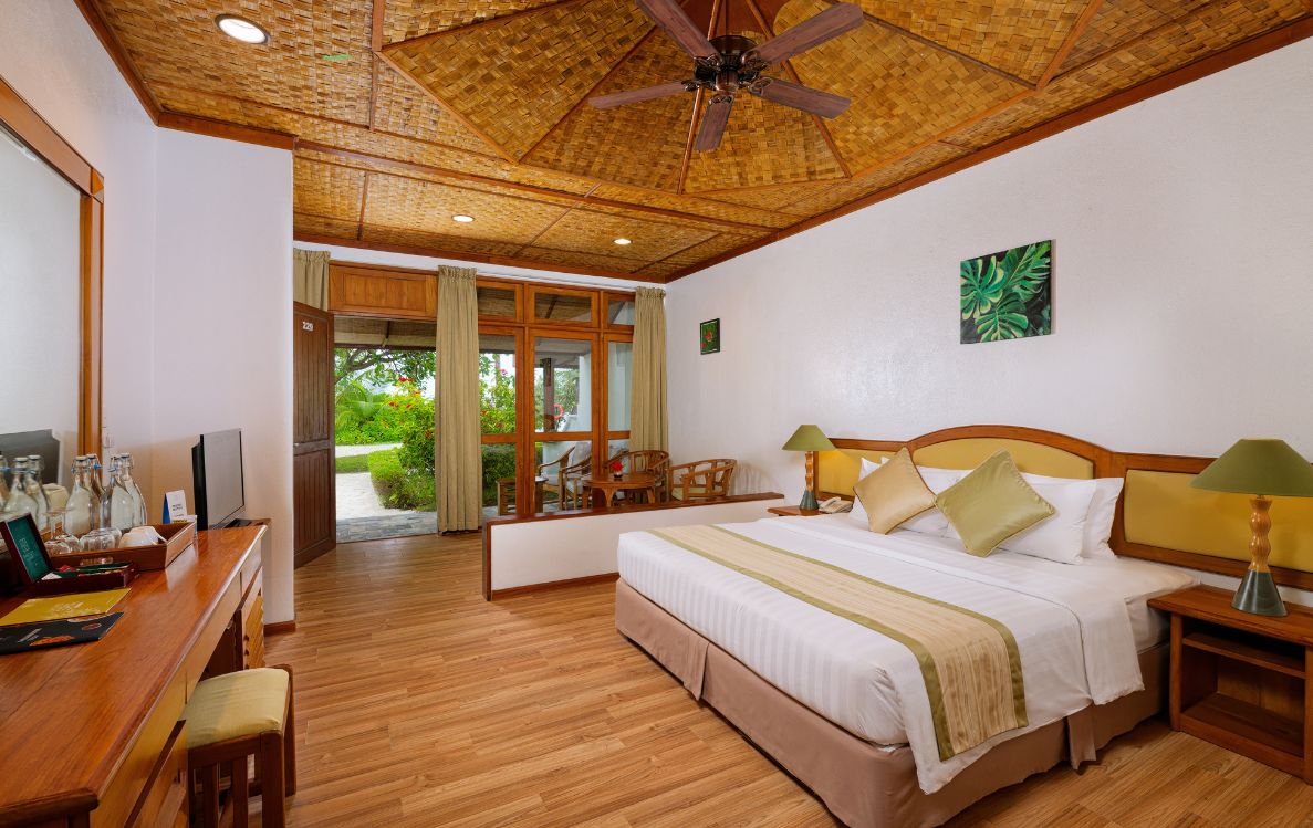Nestled close to the resort’s lively pool and clubhouse, the Garden Villas are wooden retreats surrounded by verdant gardens. Their spacious outdoor decks invite relaxation, blending classic Maldivian design with modern comforts for a peaceful yet connected stay.