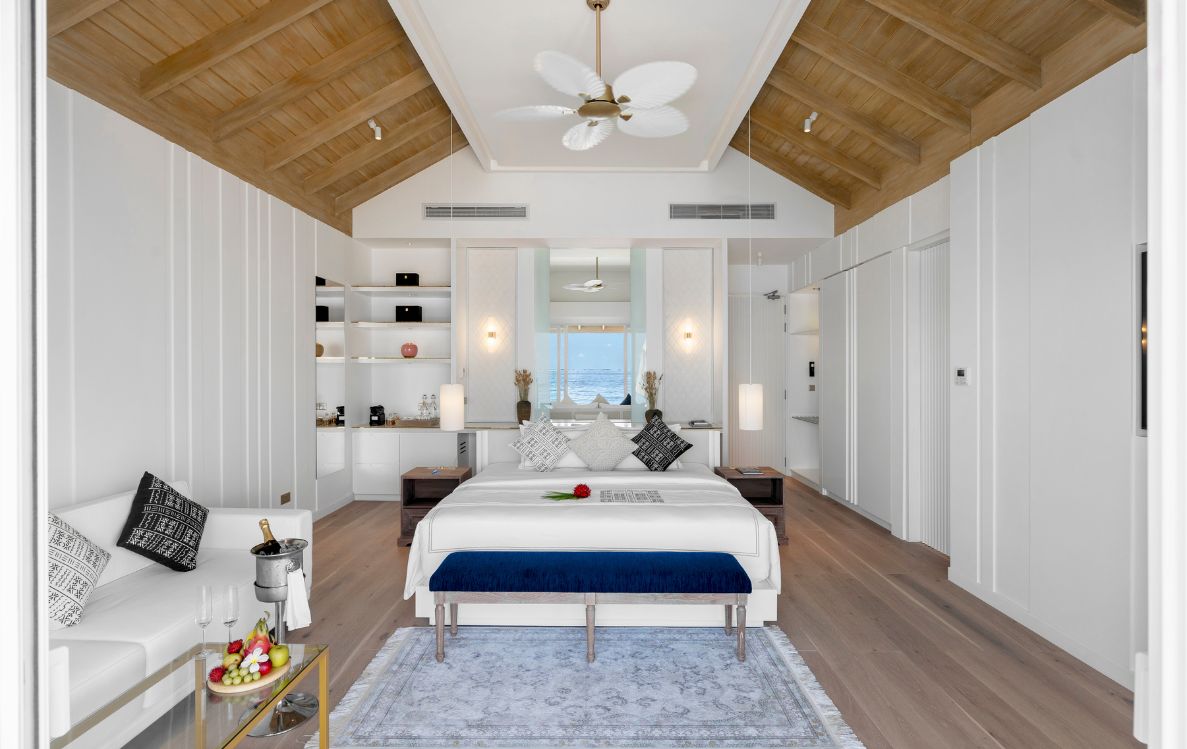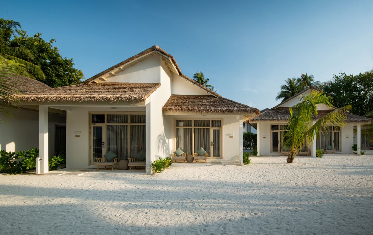 The Beach Villas embody coastal elegance, with whitewashed walls, thatched roofs, and minimalist decor. Located mere meters from the ocean, these villas merge traditional Maldivian aesthetics with modern amenities, offering a chic and comfortable seaside retreat.