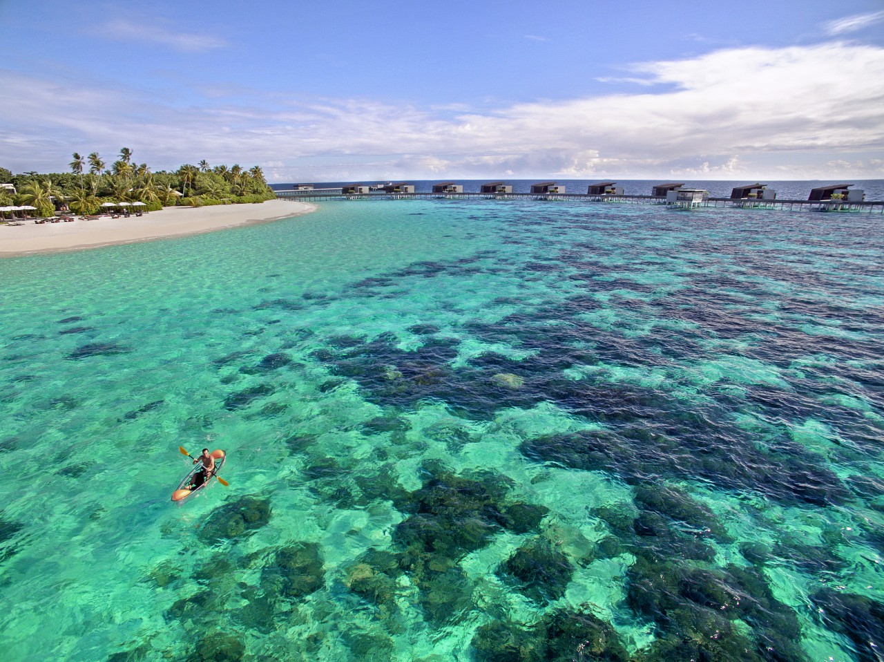 Glide across the calm, azure sheet of oceanic silk in true naturalist style. Enjoy the endless horizon or gaze through your glass-bottomed kayak into the clear waters. Marvel at the enchanting vibrance of the marine reef community beneath you. Just one of the curated experiences at Park Hyatt Maldives that immerse you in the unique Maldivian sense of space and vastness of the cyan-blue ocean all around.