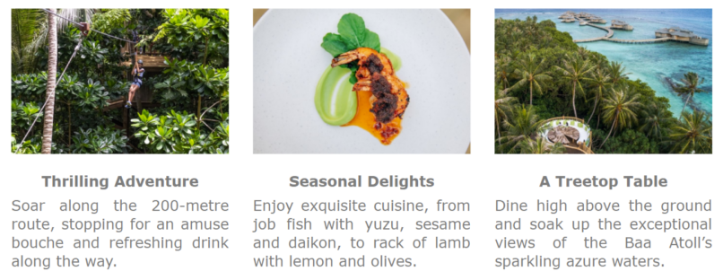Introducing Flying Sauces, the exhilarating new culinary concept at Soneva Fushi. This first-of-its-kind dining destination is set to become a true bucket list experience for gastronomes and thrill-seekers alike, combining the adrenaline-fuelled excitement of a zip line with an exquisite gourmet menu.