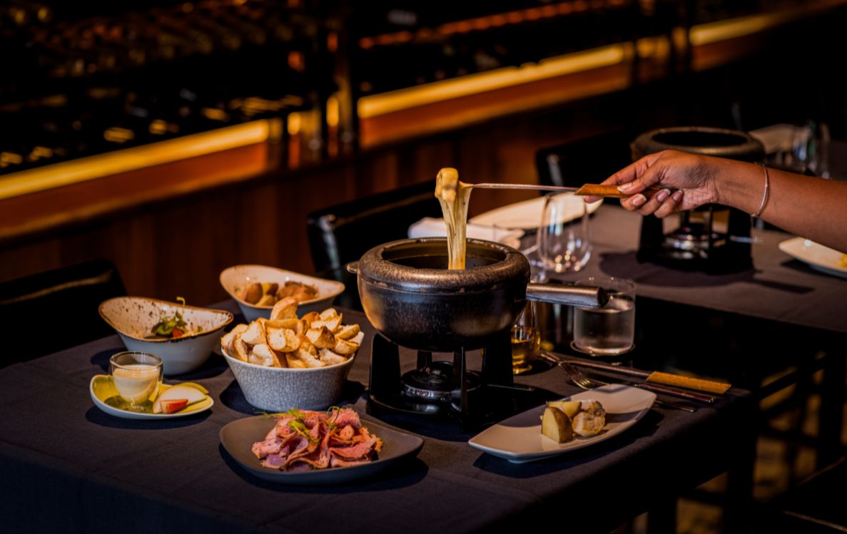 Inside a space deliberately crafted for indulgence, The Cheese & Wine Bar is the Maldives’ only venue dedicated to artisanal cheese and wine pairing. Guests walk across a distinctive imported Black Volcanic‑Sand floor, plucked from New Zealand, and settle into cosy low-lit surroundings ideal for a romantic evening or a relaxed catch-up with friends. The menu combines world‑class cheeses melted into fondue, gourmet tapas tours of cheeses, bread, pickles and cured meats, each matched to complementary fine wines and Champagne—designed for informal sharing and tasting pleasure.