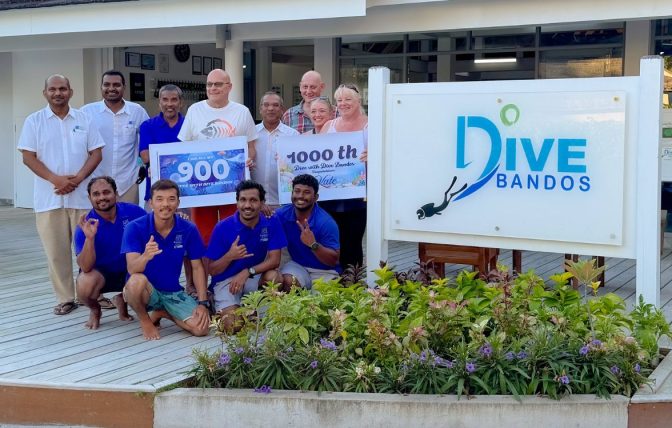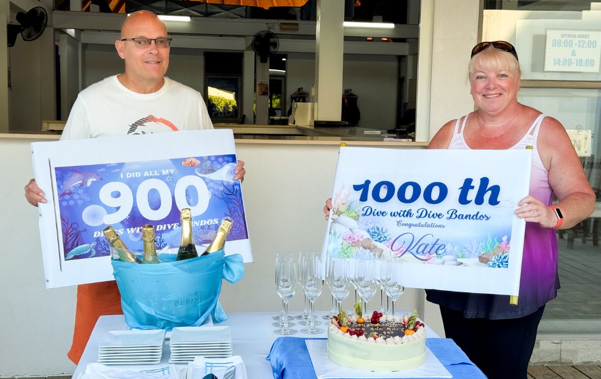 Andy reached an incredible milestone of completing his 900th dive, every single one of them with Dive Bandos. His spouse, Kate, celebrated an even more extraordinary achievement which is her 1000th dive, with more than 900 of those dives with Bandos Team.