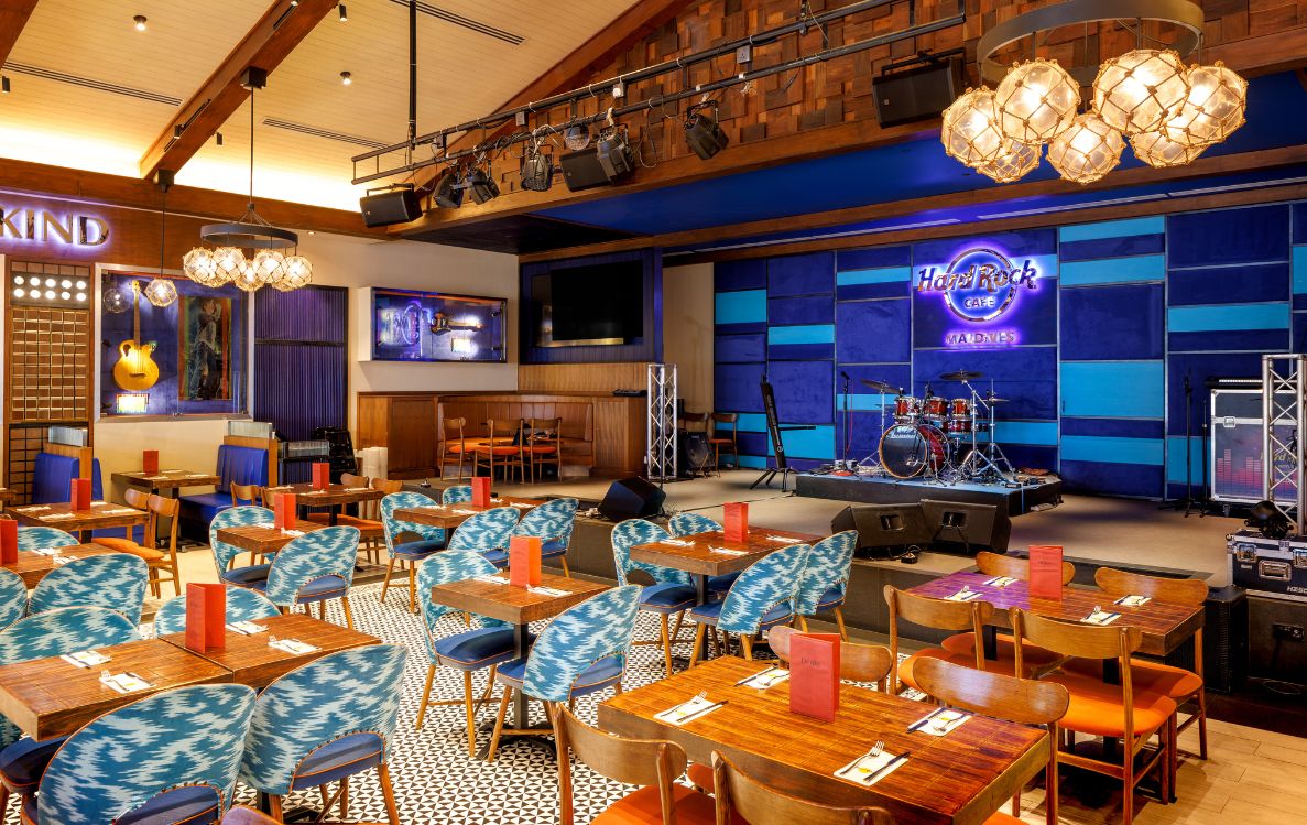 Dining is equally lively. Restaurants like Sessions and The Elephant and The Butterfly bring bold flavours and interactive culinary moments, while Hard Rock Café Maldives adds a classic dose of American rock culture just a short walk away. Evenings often turn into something special, live music, themed nights, or simply the fun of watching a fiery Maldivian sunset with a drink in hand.