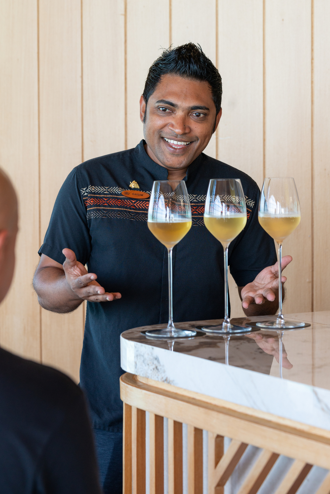 Like Hamdan, Gasim Ibrahim began his Conrad Maldives stint as an F&B attendant, and it was there that he came under the tutelage of the head sommelier and began his education in earnest. Over a decade later, he is now one of the rare Maldivian sommeliers working in the industry and is currently completing his WSET Level 3 certification.