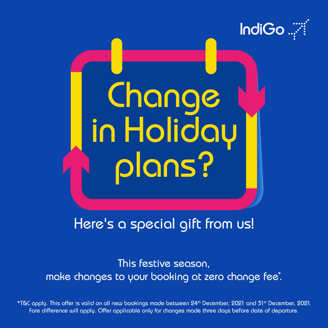 IndiGo has just announced a special offer for the festive season where customers can make changes to bookings at zero change fees (T&C apply).