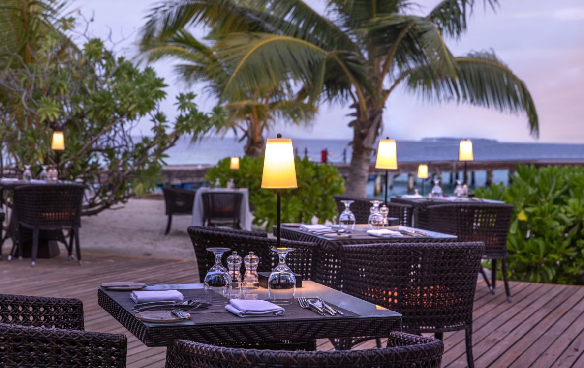 Thavaa Restaurant brings the flavors of the Mediterranean to the Maldives, offering a menu inspired by the coastal cuisines of Greece and Italy. Featuring Mediterranean cuisine, tapas, and healthy eats, Thavaa provides an elegant dining experience for lunch and dinner (reservations recommended). The open-plan kitchen immerses guests in the culinary process, filling the air with enticing aromas as they enjoy their meal in a refined setting that complements the island’s tropical charm.
