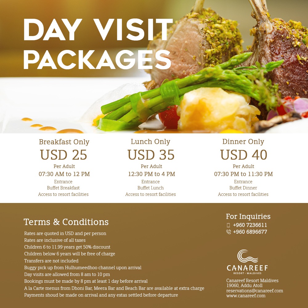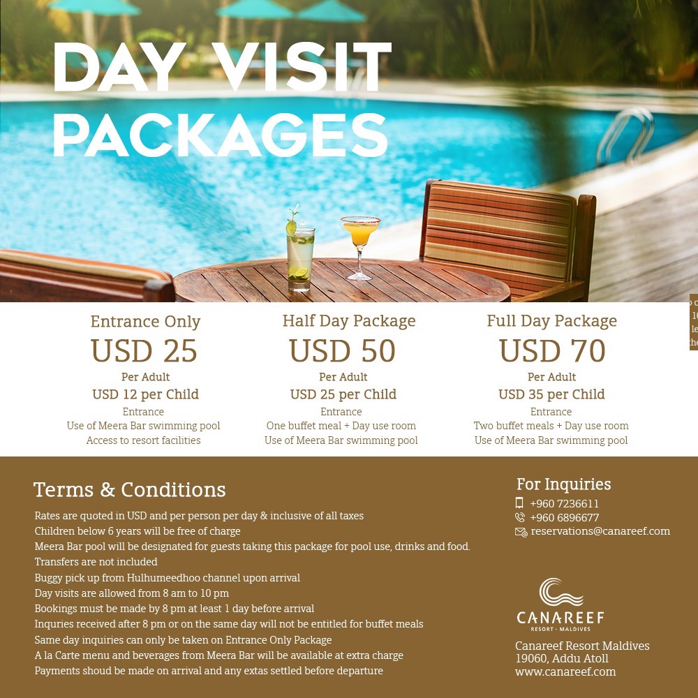 For inquiries, please contact +960 7236611 or +960 6896677, or via email at reservations@canareef.com, or visit their website at www.canareef.com.