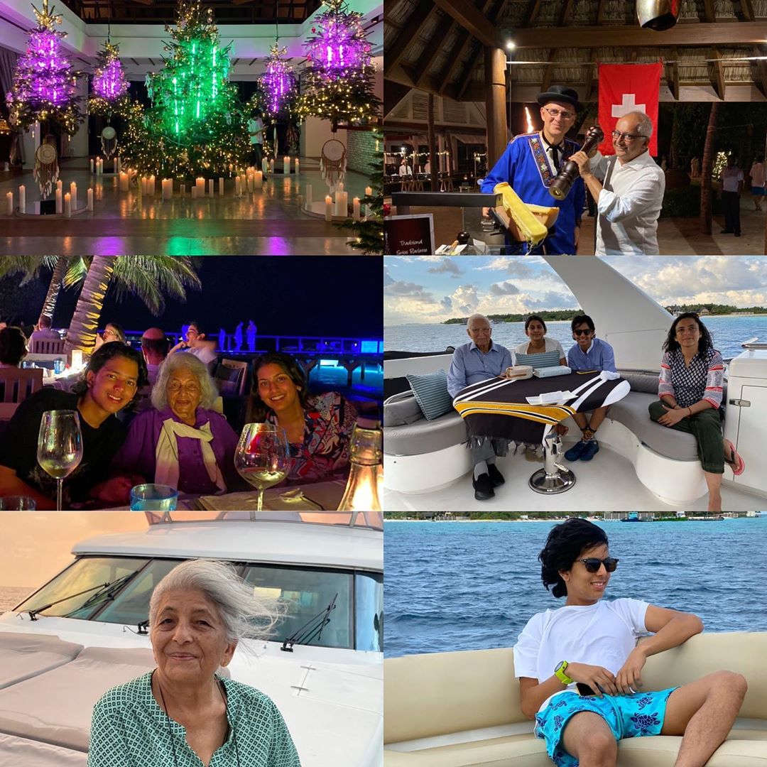 Bollywood superstar Juhi Chawla is celebrating the holidays with family in the Maldives at Four Seasons Landaa Giraavaru.
