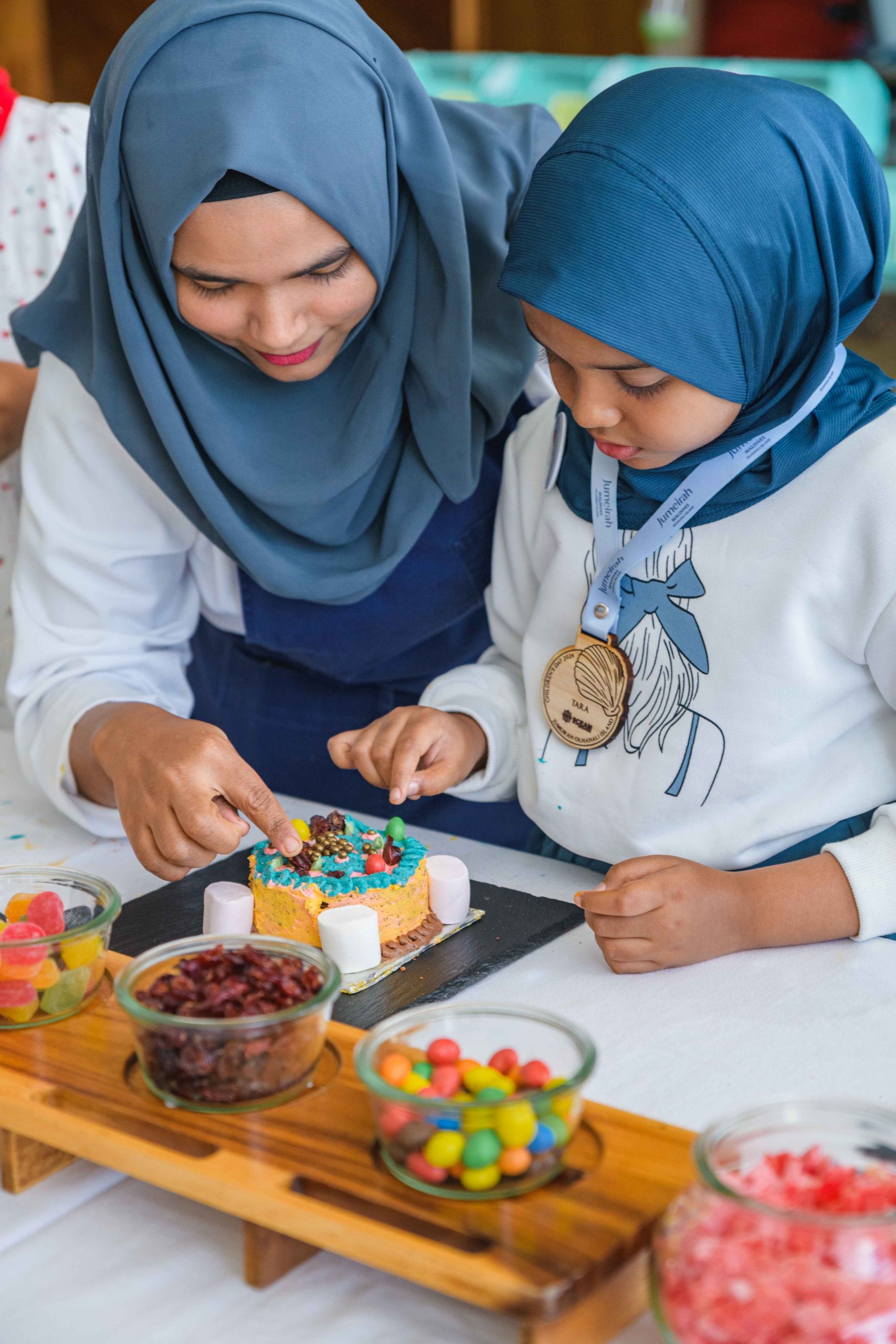 The day commenced with a warm welcome ritual from the resort’s management team and the friendly members of its Kids Club. The children then participated in a hands-on cake decoration activity with the resort’s talented chefs, crafting delicious treats to share with their families. Following a delightful lunch at the poolside all-day dining restaurant, GLOW, the little guests engaged in a creative crafting session guided by artists from the island’s MURACA Art Studio. As the day unfolded, the children had the opportunity to explore the resort’s contemporary beachside villas and indulge in some splash fun in the private infinity pools. Concluding the visit, each child received a special gift and a certificate of participation to cherish as part of their Olhahali Island memory.