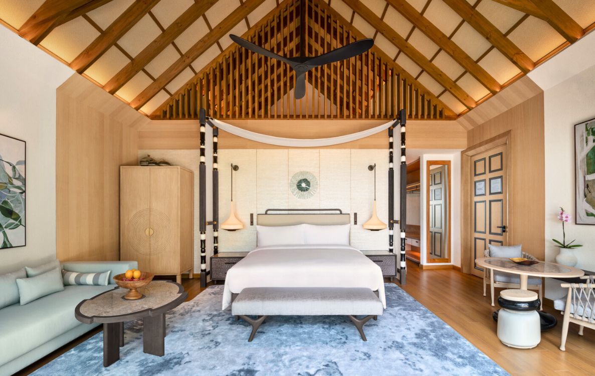 With 80 thoughtfully designed private pool villas, including 47 overwater pool villas, the resort blends traditional island aesthetics with contemporary luxury to create a harmonious connection with nature. A haven for relaxation, each villa boasts expansive terraces, uninterrupted views of the Indian Ocean, and access to pristine lagoons. Perched above the turquoise waters, the Three-Bedroom Ocean Residence offers an unparalleled sanctuary, blending luxury with breathtaking views for a truly exceptional experience. Tailored for families or groups of friends, this elegant residence provides a refined space to connect and create lasting memories, all while enjoying uninterrupted panoramic ocean views.