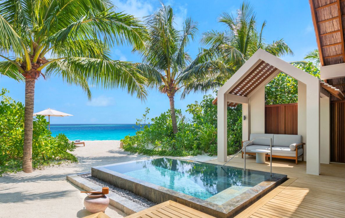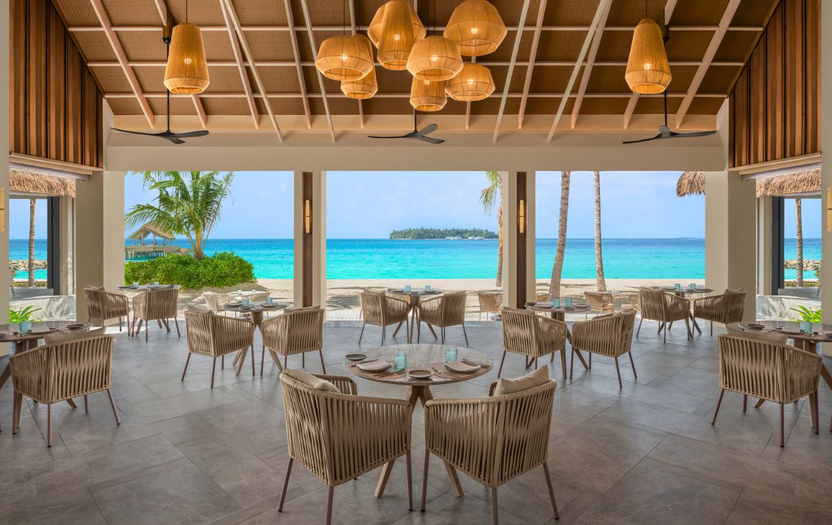 Envisioned by acclaimed architect Cuneyt Bukulmez of Turkey-based Atolye4N, the resort’s villa design artfully blends local Maldivian touches with sleek, modern elements drawing inspiration from the enchanting island. The arrival jetty, inspired by the graceful flight of the Maakana heron, sets the tone for the resort’s design. The villas echo traditional Maldivian ‘Gedhoru’ huts, with kajan roofs and vibrant turquoise doors, complemented by a calming palette of neutral tones. Thoughtful nods to Maldivian lacquerware crafts and contrasting elements are seamlessly woven throughout, creating a serene and harmonious retreat. The resort fosters a deep connection with nature, seamlessly blending indoor and outdoor living. Floor-to-ceiling glass doors open to opalescent ocean views, while open-air showers and private pools create an intimate oasis. Crafted with natural materials such as timber and stone, the resort’s design pays homage to the raw beauty of the island nation, offering an elevated experience of luxury, tranquillity, and mindful relaxation.
