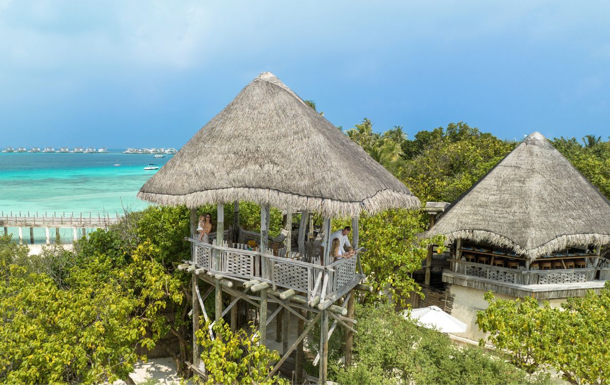Asian culinary traditions are celebrated across several standout venues. Hashi, set in an elegant overwater pavilion, presents Japanese specialities such as sushi, sashimi, and teppanyaki, prepared with precision and artistry by skilled chefs. Whether enjoying the theatre of a teppanyaki performance or savouring delicately sliced nigiri, guests experience a seamless blend of tradition and contemporary flair. Complementing this is Kaashi, a treetop Thai restaurant offering authentic flavours inspired by regional Thai cuisine, paired with panoramic views and an elevated dining experience above the island canopy.